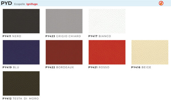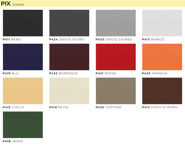 braccioli regolabili, movimento contatto permanente, alzata a gas; sedile imbottito e rivestito.