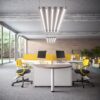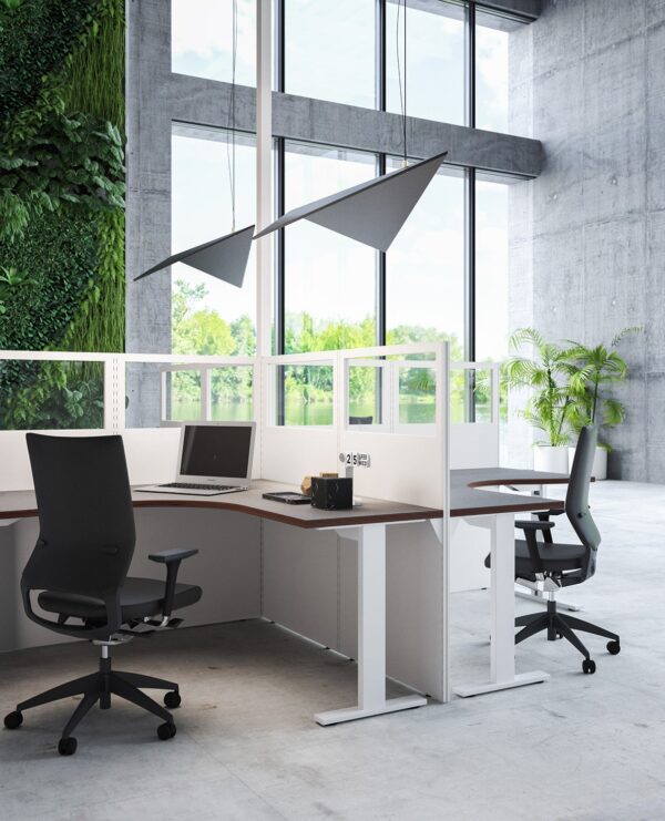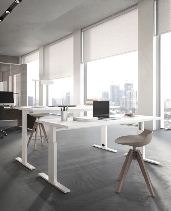 Una di queste è la scrivania elevabile in altezza. I piani delle scrivanie hanno uno spessore di 30 mm e sono elevabili da 62 a 128 cm di altezza da pavimento, tramite l’innovativo sistema elettrico di sollevamento.