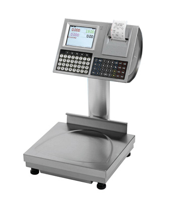 Bilancia con carrozzeria in acciaio Inox con colonna in alluminio anodizzato, stampante termica, programmabile da PC, 8 operatori, gestisce fino a 3000 PLU, disply LCD (TFT) con scelta colori programmabile.