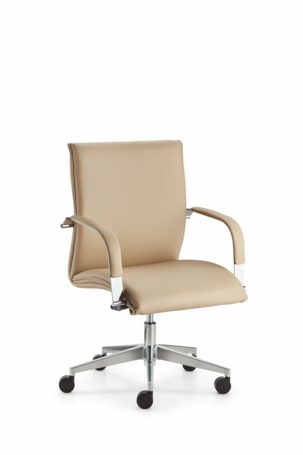 La poltrona per interlocutore Lexus, nelle versioni con base fissa a quattro razze piramidali in alluminio e fissa a slitta, arreda con personalità uffici e sale riunioni. È caratterizzata da rivestimenti di qualità e accurate finiture artigianali.